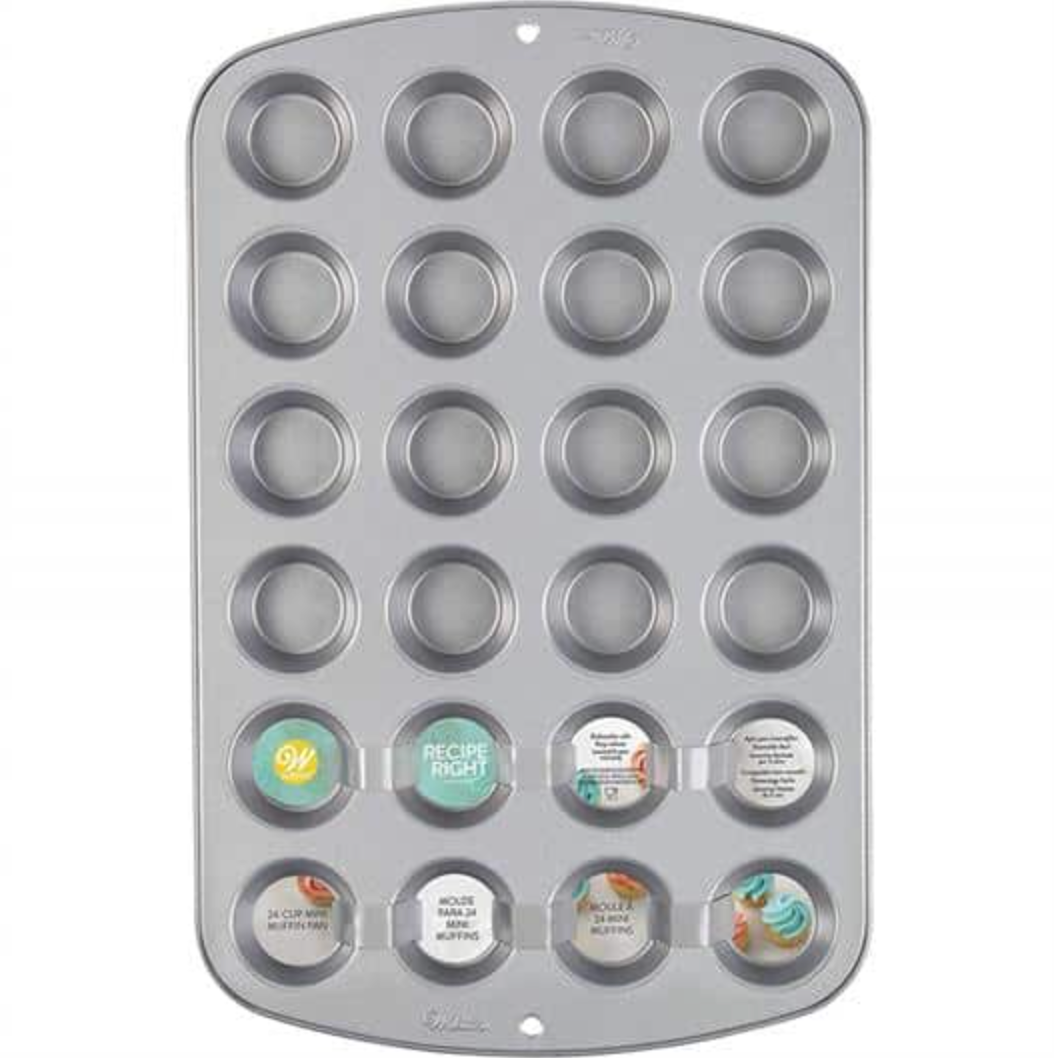 Mini muffins bageform fra Wilton. Formen har plads til 24 mini muffins - ideel til små søde bidder, cupcakes eller småkager til fest, fødselsdag eller hygge.